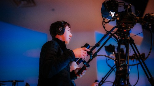 Students can serve on the Tech Team during Wednesday nights and Sunday mornings, gaining hands-on experience in sound, media, and production.
